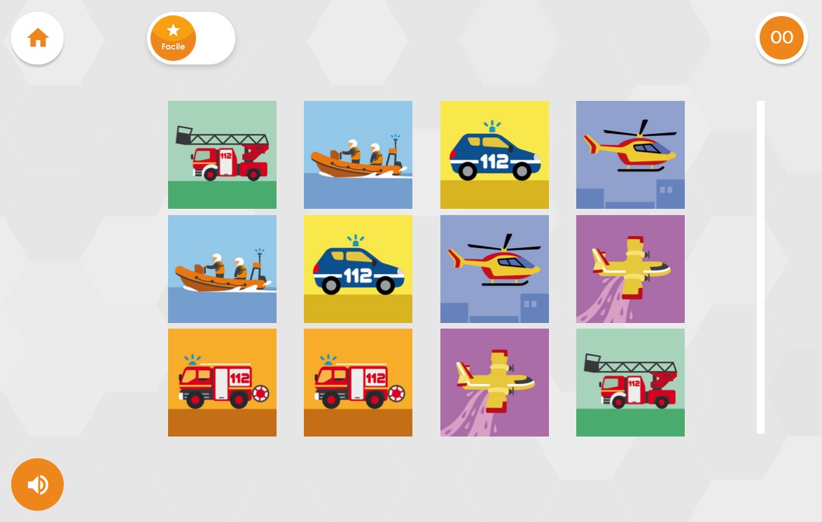 Le jeu se présente sous la forme d’un mémo. Une mécanique simple afin que les enfants les plus jeunes puissent se focaliser sur le message grâce à une mécanique qu’ils connaissent bien. Ce jeu fait appel à l’observation du joueur pour retrouver les cartes identiques. Conçu pour les enfants, il permet de leur apprendre de façon ludique les numéros des différents services de secours. Un adulte doit être présent aux côtés de l’enfant pour l’aider mais aussi pour lui indiquer des situations types où ces secours sont en capacité d’intervenir.